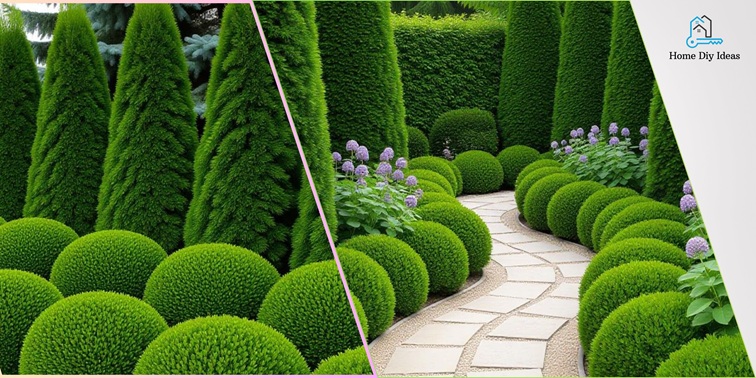 Repeat evergreen species across the yard for unity, but mix forms and heights for visual rhythm.