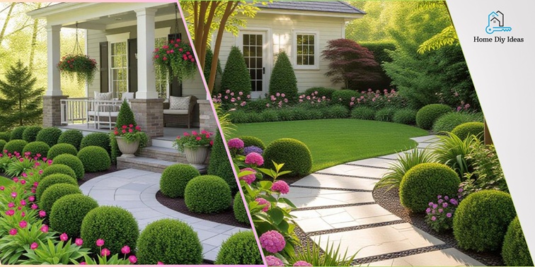 Combine evergreen structure with seasonal flowers. Hardscape features — patios, lighting, and edging — keep the yard appealing beyond spring.