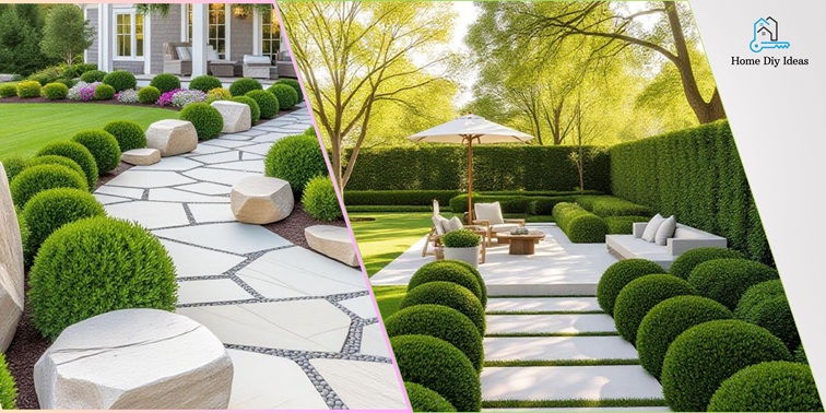 A white stone path bordered by greenery creates contrast and guides the eye naturally through your garden.